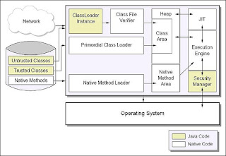At runtime, the class loader fetches the .class file from storage media or network. Each class file is fed to a bytecode verifier to ensure that the class file is correctly formatted and is safe for execution. The byte-verification process slows the process to load the class in JVM, but it is performed only once and not every time the program runs. Figure A.1 explains how the JVM fetches classes from disk or network and then verifies that the bytecodes are safe for executing.